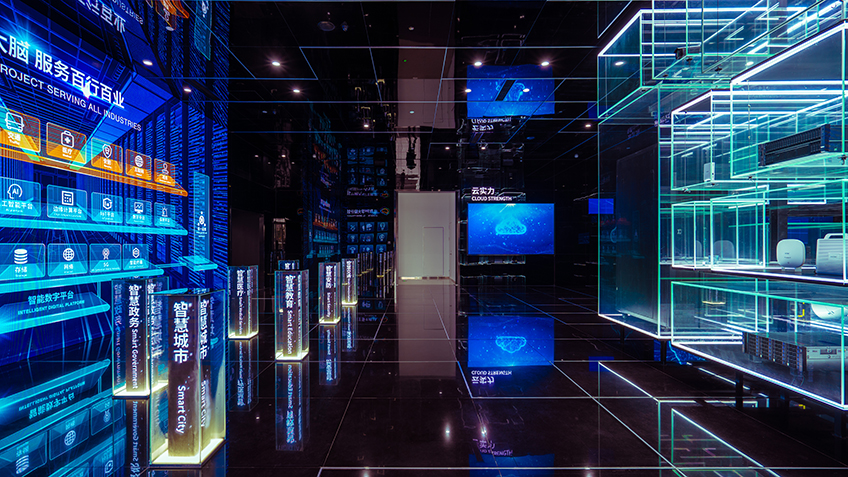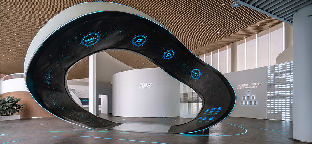 紫光集團智慧之環展示中心位于四川成都,展陳區域建筑面積1876平方米,由科技紫光、芯云一體、芯片之智、云網之慧、智慧生活、智慧天府六個展廳組成。