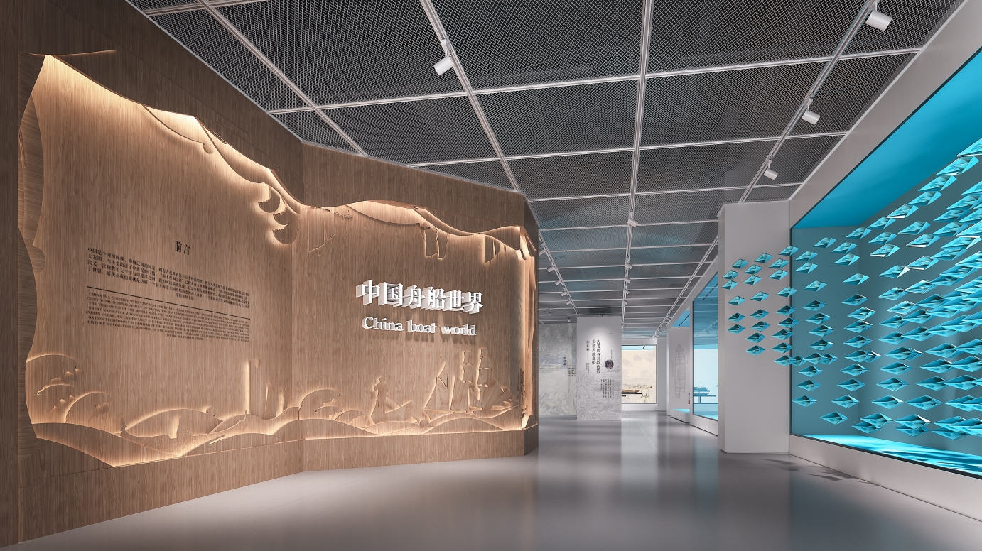 金螳螂文化設計團隊深入解讀“中國舟船世界”主題,將舟船文化、海洋文化、海上絲綢之路文化元素融入展陳空間,達到整體設計的和諧統一。