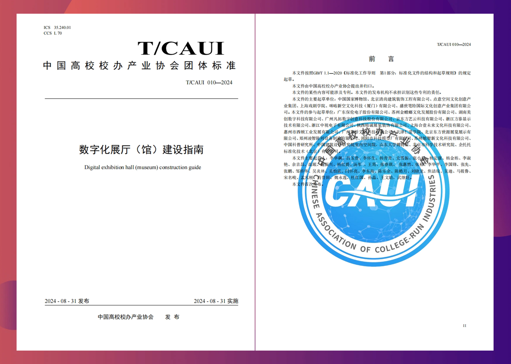 近日,金螳螂文化參編的《數(shù)字化展廳(館)建設(shè)指南》(T/CAUI 010—2024)正式發(fā)布。